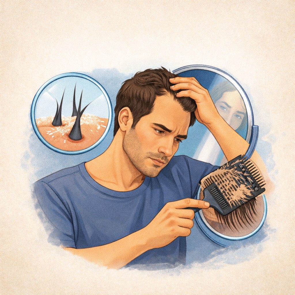 Personalized homeopathic solutions for hair and scalp concerns by addressing root causes, including hair loss, androgenetic alopecia, alopecia areata, hair diseases, and scalp-related conditions.
